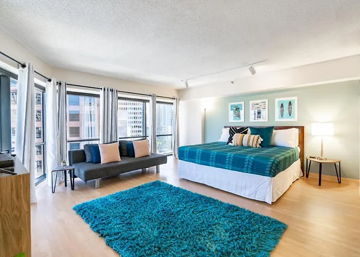 El Retreat Ejecutivo Espacioso y Sin Costo de Estacionamiento te recibe en el vibrante centro de Honolulu, donde la modernidad se combina con la cultura hawaiana. Este acogedor espacio cuenta con una habitación grande y una cocina completamente equipada, ideal para aquellos que buscan comodidad y funcionalidad durante su estancia. Además, las instalaciones de seguridad disponibles las 24 horas brindan tranquilidad, permitiéndote disfrutar de las impresionantes vistas de la ciudad.